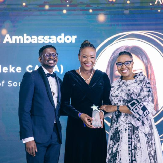 Auditor-General Tsakani Maluleke was awarded the Saica Brand Ambassador Award at the Saica Chairman's Awards. This award goes to someone who actively promotes Saica and its designations through branding, marketing communication efforts, thought leadership and public engagement, and who has contributed to Saica's development and advocacy efforts.